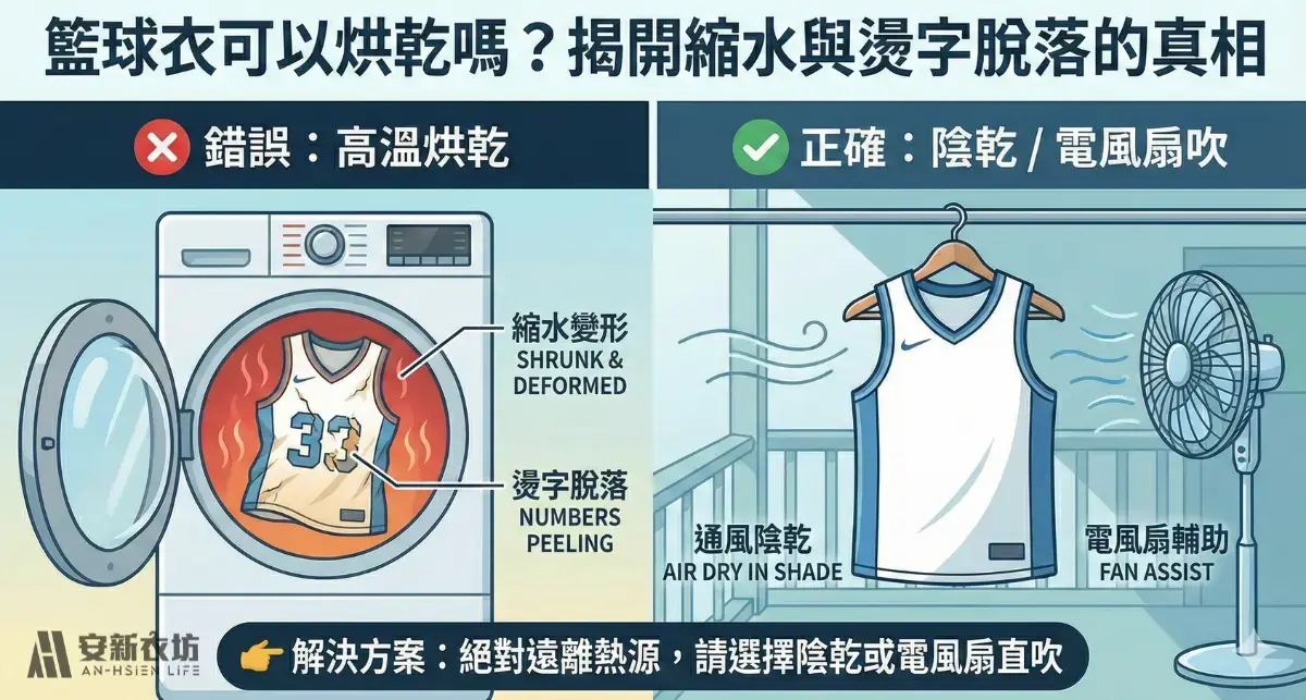 錯誤一、籃球衣可以烘乾嗎?揭開縮水與燙字脫落的真相