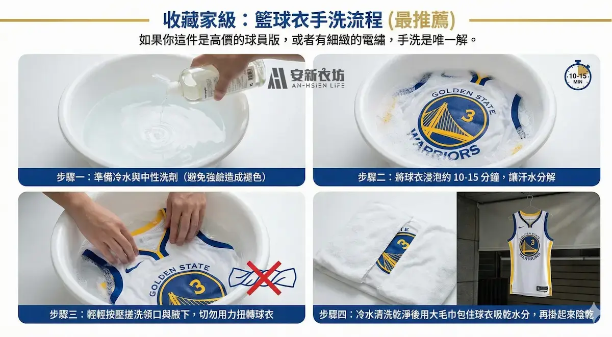 如果你這件是高價的球員版,或者有細緻的電繡,手洗是唯一解。