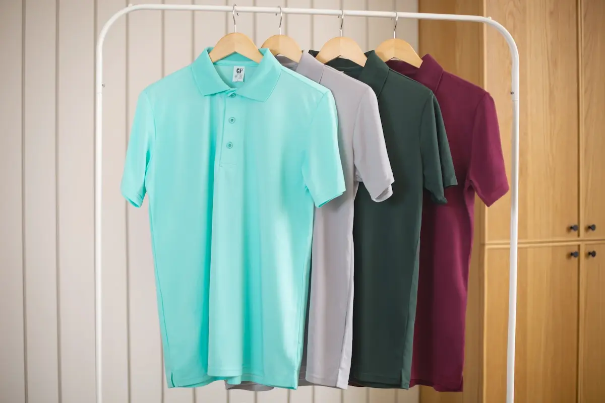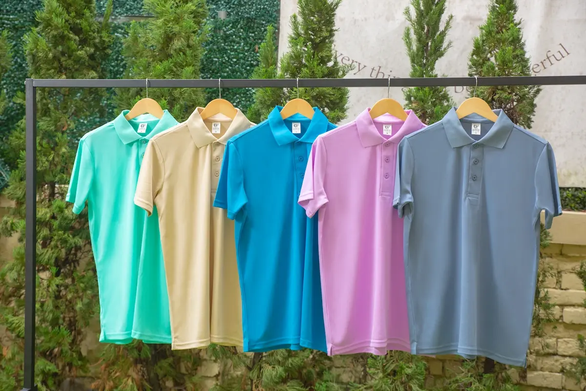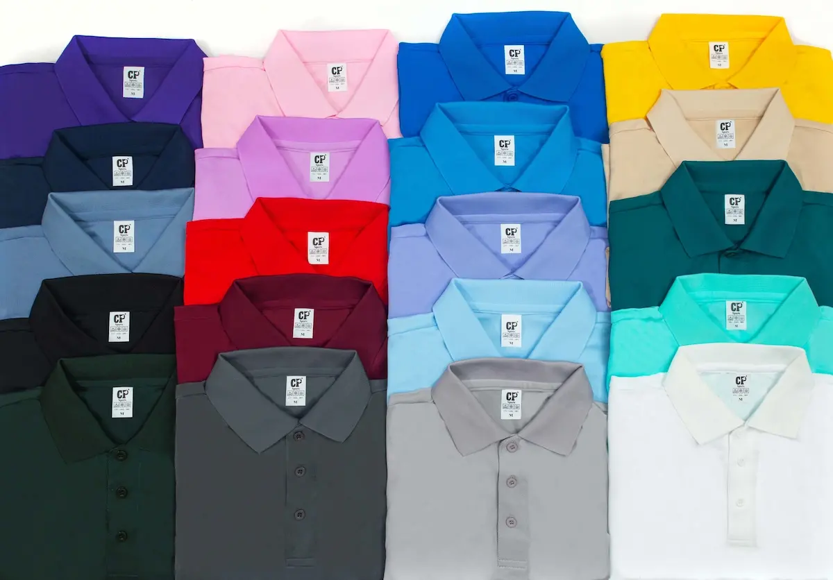專業色彩,一應俱全!CP102 系列提供多達20種配色方案,從商務沉穩色系到充滿活力的運動色調,都能在安新衣坊找到。這張實拍展示了每一件 POLO 衫一致的挺拔領片與高品質針點排汗布質感,確保您的團隊無論選擇哪種代表色,都能展現最頂級的專業風采。