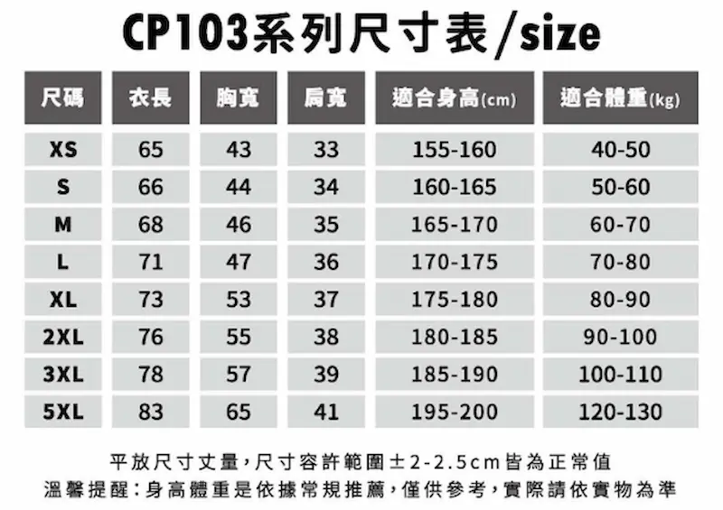 CP Sports 涼感吸濕排汗休閒運動背心 CP103,採用4.5 oz/yd²,150g/m²,100%聚酯纖維,高級透氣針點排汗布。具有吸濕排汗功能、涼感降溫功能,防曬係數UPF50+。彈性纖維,不易勾紗,雙針下擺摺邊,領圈及袖口有滾條。可另加口袋、筆插。易撕領標、印刷加工推薦款。